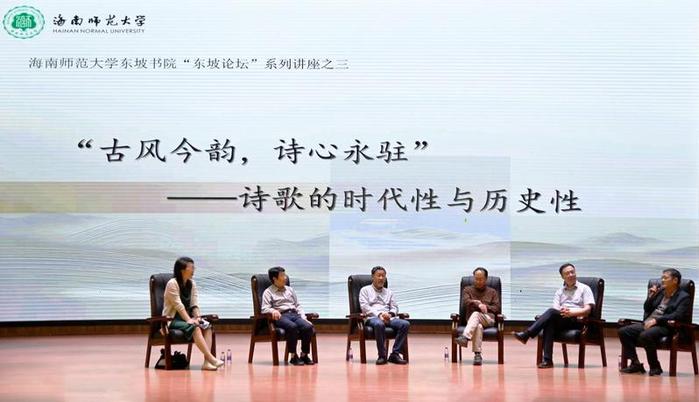 2024年11月9日下午,我校东坡书院“东坡论坛”之“古风今韵,诗心永驻”专家对谈活动在桂林洋校区大学生活动中心演艺厅举行。河南大学文学院耿占春教授、中央民族大学文学院敬文东教授、海南师范大学文学院毕光明教授、北京体育大学人文学院王巨川教授、海南省作协副主席长江非参与对谈。首都师范大学中国诗歌研究中心孙晓娅教授主持活动。